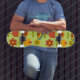 Colorida, divertida e pronta para se mover. Este Skateboard Deck é uma adição perfeita à vida de alguém divertido e atlético.