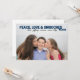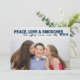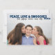 Mostre sua foto favorita com esta saudação divertida de Dia de os namorados da PiPo Press. Projetado com um ousado e azul escrito à mão "Peace, Love & Smooches", ele deseja aos seus amigos e família alegria por este Dia de os namorados e em 2014.