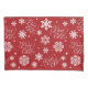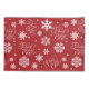 Ilustração de texto de paz e alegria com decoração de flocos de neve brancos em fundo vermelho