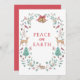 Envie paz e cumprimentos de férias para seus amigos e familiares com este cartão de Natal exclusivo. O design deste cartão apresenta ilustrações de aquarela pintadas à mão em uma moldura oval na frente do cartão com a mensagem "paz na terra". Personalize facilmente este cartão com sua própria foto, os nomes da sua família e uma mensagem ou foto adicional no verso. Esquema de cores vermelho, verde e dourado para um design de cartão tradicional, mas moderno.