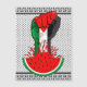 Sinalizador Palestina sobre o Símbolo de Liberdade de Revolução, vindo de uma Melancia. Na Palestina ocupada, a melancia é um símbolo de resistência. Com as suas cores que espelham a bandeira palestiniana, a fruta pode ser vista dos muros de pedra de Gaza às galerias de Ramallah, apontando a história política de uma querida fruta de Verão. Uma vez que a supremacia dos ocupantes israelitas não permitiu aos palestinianos expor a sua própria bandeira branca vermelha, negra e verde original.