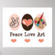 Um símbolo de paz, coração, pincel e uma paleta colorida cheia de tinta em rosa e marrom na roupa, roupas e mercadorias fazem do professor de arte perfeito, estudante de arte ou presente artístico. Um presente, um óleo, uma cor de água ou um pintor acrílico, certamente adorará.