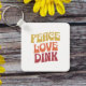 Peace Love Dink Square Metal Chaveiro