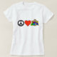 Em gráficos, a mensagem nesta camiseta é "Paz, Amor, Quilting". É uma camiseta divertida para qualquer um que colcha ou um presente para alguém que o faz. O gráfico no final mostra uma mulher segurando a coloração colorido que ela fez. E você pode comprar esta design em qualquer outro item de roupa para mulheres também. Além disso, se você precisar de um tamanho maior, você pode comprar isso em uma camiseta masculina. Desenhado por Sheila Cicchi, Brownielocks.com, Todos os Direitos Reservados.