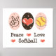 Símbolo de paz bonito, coração e softball amarelo em cor rosa e marrom escuro no roupa de softball, roupas, papelaria e mais itens que fazem um jogador de softball, time de softball, treinador de softball, futuro jogador de softball ou mãe de softball e presente de pai.