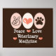 Símbolo de paz, impressão cardíaca e pata em castanho-rosa e castanho-escuro sobre presentes veterinários, roupa DVM, vestuário, camisas de veteranos e mais mercadorias para médicos de animais para um veterinário, assistente veterinário ou tecnologia. Um belo presente de formatura em veterinária, estudante ou veterinário para ele, para ela, para a família, para os filhos e para o funcionarios numa clínica ou hospital de animais.