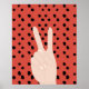 This bold, playful poster features a classic peace sign set against a vibrant red background filled with evenly spaced dots. The graphic, preppy design blends retro charm with modern simplicity, making it an eye-catching statement piece that adds energy, positivity, and a pop of color to any space.