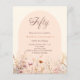 Um convite elegante para flores silvestres. Um fundo creme, cor bege e um arco colorido de pêssego. Decorado com flores silvestres de cor d'água em bege, rosa. 1 folha = 1 convite impresso de borda a borda.
