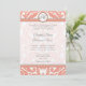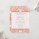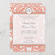 PeACH Victorian Vintage Damask Heart Wedding Seal Coral & Cinza Invitation mostrado em Round Card, mas pode escolher Square Card.