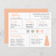 Um cartão de informação da dama de cor de pêssego, incluindo informações sobre a data e a localização do casamento, as cores do casamento, a festa noiva, o vestido da dama de honra e uma mensagem de proposta da dama de honra. No canto superior esquerdo, o nome da madrinha é escrito em um guião de escrita manual de pêssego. No canto inferior direito, há um vestido cor de pêssego. No centro, há as cores do casamento em círculos. As cores, incluindo a cor do vestido de noiva, podem ser mudadas.