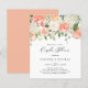 Convide convidados para o seu evento com este convite personalizável para chás de casais florais. Apresenta a cor d'água, a terra floral de pêssego, laranja e rosa de marfim, hydrangeas e peões com sotaque de folhas de eucalipto. Personalize este convite de chá de casais de aquarela adicionando seus próprios detalhes. Este pêssegos e creme são perfeitos para chás de casal.