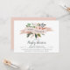 O convite para chás de fraldas chic apresenta uma fita rosa-pincelada com as palavras "chá de fraldas" com flores de pêssego e folhas verdes espiando. Personalize com os detalhes do seu chá de fraldas em letras negras pouco claras, com o nome da mãe a ser em um elegante roteiro de caligrafia estilo escrito à mão.