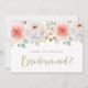 Você será minha dama de honra? Peça à família e aos amigos que façam parte do seu casamento com este cartão postal da festa floral. Apresenta pêssego aquoso e pénicas brancas com folhas de eucalipto de folha de ouro verde e falsa. Personalize alterando o texto e a mensagem frontais. Este pessegueiro e o cartão de proposta da dama de honra são perfeitos para casamentos na primavera.