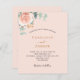 Pêssego fundo colorido. Decorados com ouro-rosa e folhas de eucalipto cor-de-rosa-esbranquiçada, flores de rosa e cor-de-rosa-esbranquiçada, galhos, verde e borras de ouro. Personalize e adicione seus nomes e detalhes do casamento. Voltar: adicione o URL do site de casamento ao código QR para obter detalhes e/ou RSVP. 1 folha = 1 convite impresso de borda a borda.