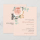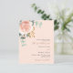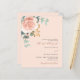 Um fundo cor de pêssego. Decorados com folhas de eucalipto florais, verdes e de cor rosa, de cor aquosa, de galhardetes, de verde e de ouro falso. Personalize e adicione seus nomes e detalhes do casamento. Voltar: adicione o URL do site de casamento ao código QR para obter detalhes e/ou RSVP. 1 folha = 1 convite impresso de borda a borda.