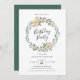 Nossos convites para bolsas mensageifestas de aniversario elegante contêm as palavras "Festa de aniversário" cercada por uma estonteante coroa floral com rosas de pêssego pintados e verde-esmagador. Personalize o chic, convites de festas de aniversários florais com os detalhes do seu partido para um design elegante. O verso do convite de aniversário apresenta um fundo verde comum que é perfeito para adicionar uma foto ou mais textos.