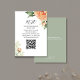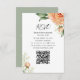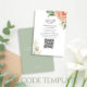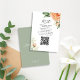 Preencha sua elegante suíte de casamento com esta placa RSVP de casamento de na moda com um código QR para respostas fáceis online. Os sofisticados sotaques florais de cor d'água e a sofisticada folhagem verde trazem um olhar fresco e eterno para o simples modelo de resposta. Com a escrita de caligrafia moderna e a tipografia quic, este cartão é perfeito para primavera, verão ou casamentos outono. Combine a tecnologia sem esforço com o estilo clássico, permitindo que os hóspedes RSVP on-line com facilidade e complementando seu tema sofisticado. Perfeito para aqueles que apreciam um equilíbrio entre tradição e conveniência moderna