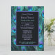 Coleção de Casamentos de Penas Peacock, única e moderna, em dramático azul-aqua e roxo. Este tema elegante tem um padrão de pena correspondente do outro lado. Personalize o convite com a hora, data, local, recepção e outras informações.