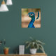 Poster mostrada com uma impressão fotográfica de um bonito pavão. Personalize este item ou comprar como está. Imagem do stock