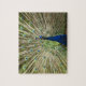 Quebra-cabeça de jogo mostrado com uma impressão de foto de um belo pavão. Personalize este item ou comprar como está. Imagem do stock