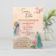 Peacock guarde a data modelo convite para download instantâneo, casamento indiano salve o convite para data, pêssego claro, dois pavões com flores e montanhas ao fundo.