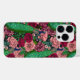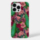 Padrão desenhado à mão com pavões e vários rosas sobre fundo escuro