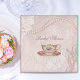 Convite de festas de chá cor-de-rosa-rosado com rendas cor-de-rosa.