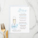 This adorable vintage chic menu design reflects modern elegance and timeless charm, featuring a romantic dusty blue bow and a prosecco glass with white pearls nearby.