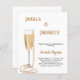 Um convite moderno, na moda e glamouroso para um Chá de panela de Pérolas e Prosecco. Um fundo branco com um copo com bolhas e pérolas. O nome é escrito com um moderno estilo escrito à mão. Personalize e adicione os detalhes da sua festa. 1 folha = 1 convite impresso de borda a borda.