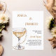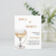Um convite moderno, na moda e glamouroso para um Chá de panela de Pérolas e Prosecco. Um fundo branco com um vidro de estilo de deco artístico com bolhas e pérolas. O nome é escrito com um moderno estilo escrito à mão. Personalize e adicione os detalhes da sua festa. 1 folha = 1 convite impresso de borda a borda