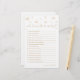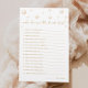 Celebre a noiva com este divertido jogo "Quem conhece melhor a noiva?", perfeito para um tema de pérolas e chá de panela prosecco. Um na moda para além de qualquer festa temática pérola, este cartão de jogo personalizado adiciona charme à sua celebração. Ideal para um tema de chá de panela de pérolas e para aqueles que buscam ideias de chá de panela clássico, é uma maneira memorável de reunir convidados e honrar a noiva a ser.