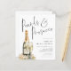 Pérolas Elegantes Chá de panela de Óculos Prosecco. Um alternativo com preço inferior a 4,5 x 5,6" em um semirbrilho de 110 lb, semelhante em espessura a um cartão postal. O cabeçalho principal está em um script de conjunto elegante. O resto do texto que você pode personalizar facilmente.