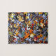 Um quebra-cabeça de quebra-cabeça desafiador. Esta imagem de peças de quebra-cabeça será divertida por horas. Pedaços quebra-cabeça multicoloridos criam um quebra-cabeça único e divertido para a pessoa que ama um desafio.