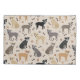 Pitbull Bonito com cores pretas, desfocadas, brindle, azuis e casaco vermelha com estampas de pata e padrão de ossos de cães.