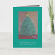 Cartão de Natal com arte original na frente e foto de uma dentro de trem de Natal, texto humorístico.