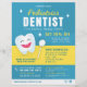 Pediatria Azul & Amarelo Folheto de Anúncio de Dental Apresenta Dente, Espelho E Espargos Sorridentes. Personalize Para O Seu Gosto.