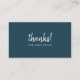 Obrigado simples, na moda, você insere design de cartão na tipografia moderna, com uma elegante fonte escrita à mão. O design minimalista limpo é elegante, com uma paleta de cores azul marinho do céu duplo. Todos os campos podem ser facilmente personalizados para uma design única e profissional que ajude a encorajar a repetição de negócios e a aumentar a fidelidade do cliente! Precisa de ajuda? Sinta-se à vontade para me contactar usando o botão de mensagem e terei todo o prazer em ajudar.