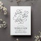 Simples e elegante, nosso casamento Romântico Solicitação salve o cartão de data com os recursos "salve a data" em letras profundas tipografia fora do preto com um coração chic trabalhado na design. Adicione seus detalhes de casamento, incluindo nomes, data de casamento, local e site abaixo. Cartões que se revertem a faixas horizontais modernas ao combinar preto e branco escovado.