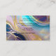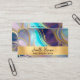 Um cartão de visita elegante com uma pedra opal de cor verde e roxa com design de folha de ouro com espaço para seu nome, profissão, identificador de mídia social, site, endereço de correspondência e número de telefone.