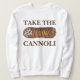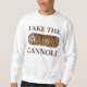 A camisola apresenta uma ilustração original de um delicioso cannoli de chocolate italiano, com TAKE THE CANNOLI em uma fonte marrom divertida. Perfeito para o seu alimento favorito!