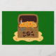 Por que é um baú do tesouro! Esta ilustração do tesouro pirata apresenta um tronco de madeira gravado com crânio e bósforos cheios de moedas de ouro, riquezas, joias e joias como rubis, esmeraldas e safiras e cordas de pérolas numa praia com conchas! O presente perfeito para o comprar de amantes piratas e qualquer um que mereça algum tesouro!