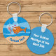 Ilustração de desenho animado de peixe apaixonado pela isca do verme no gancho. Texto personalizado de ambos os lados.