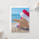 Starfish na areia da praia com chapéu de Papai Noel para cumprimentos de Natal.