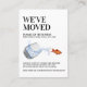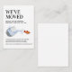 Salto de peixe dourado de vidro mudou o cartão postal do anúncio da casa de negócios Uma ilustração divertida de um peixe dourado saltando de um copo de água pontiagudo em seu lado com água saltando dele tem modelos acima e abaixo dele para seu novo endereço comercial ou residencial mais outros detalhes importantes.