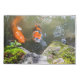 Peixes coloridos de carpa ou koi num lago de jardim superficial.