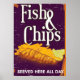 Peixes e Poster de fritas, poster de comida clássica britânica. peixe velho e poster de chip.