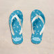 Um belo par de chinelos azuis para crianças com um padrão simples de osso de peixe. Personalize-os com o nome da criança usando o modelo fornecido. © ArianeC Ilustrações — Todos os direitos reservados