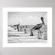 Poster é mostrado com um impressão de foto preto e branco de uma doca rústica com pelicanos. Personalize este item ou comprar como está. Imagem do stock