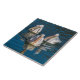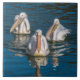 Uma bela fotografia de perto de três pelicanos impressos em um azulejo de cerâmica.
