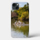 Uma vista inspiradora de Pelicanos no lago do zoológico de Phoenix com árvores verdes e água ondulada